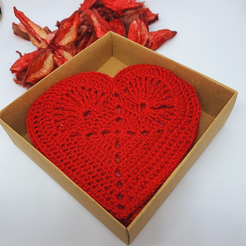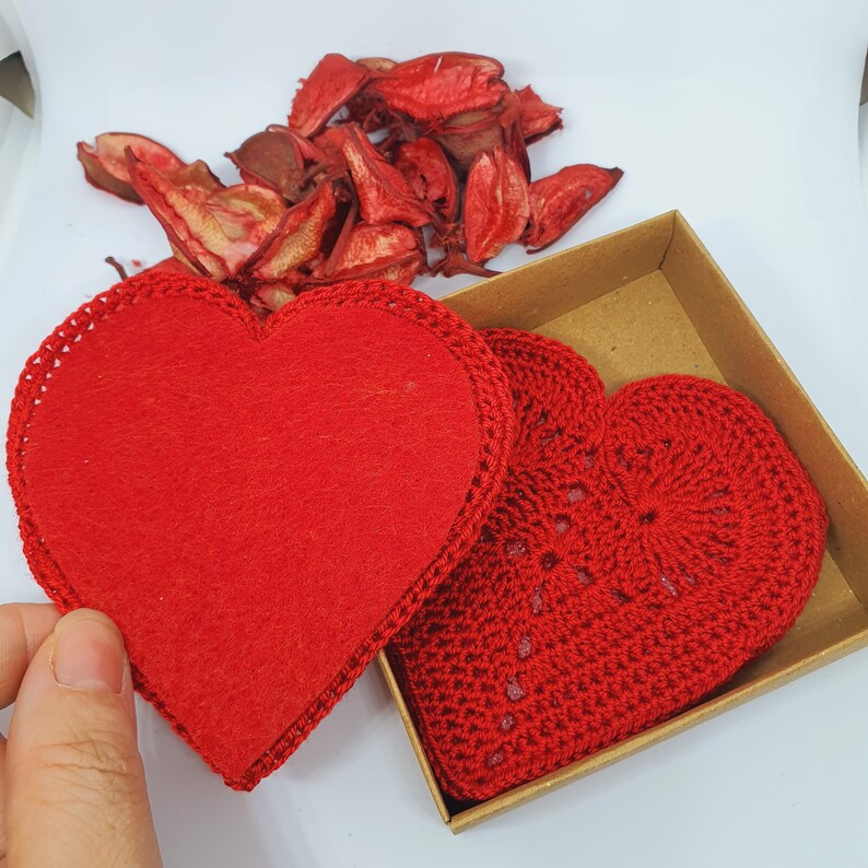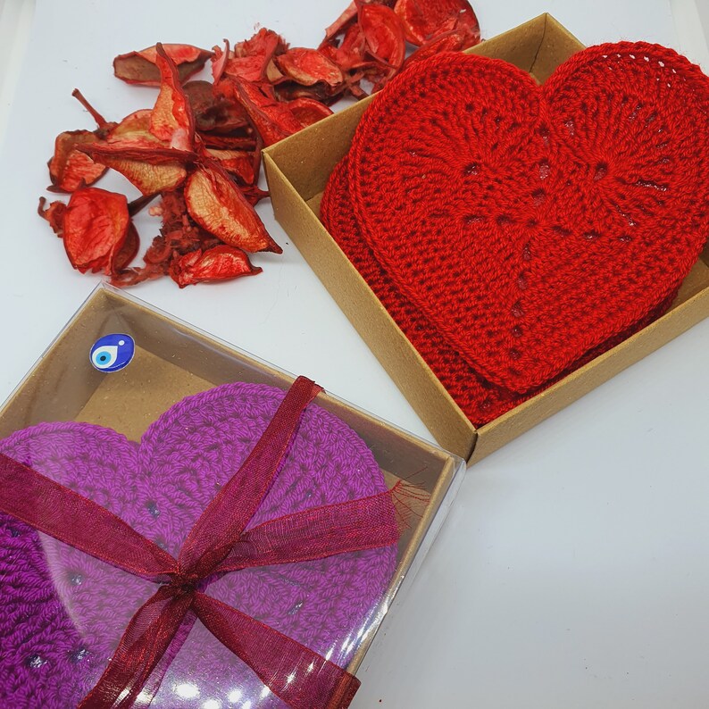 El Yapımı Kalp Temalı Kroşe Bardak Altlığı Seti (3lü)