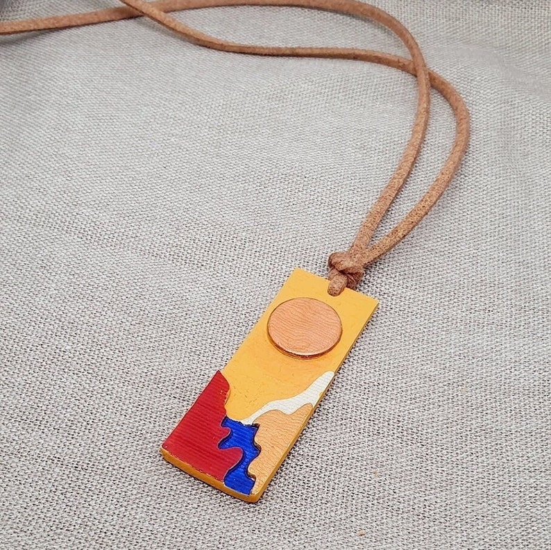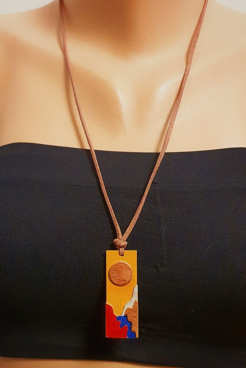 3D SLA print teknoloji ile üretilmiş olan bu özgün tasarım el boyaması bohem kolye tarzınıza tarz katacak. Kabartmalı detayları ile özgünlük ve gerçekçi bir görünüm yaratmaktadır. İpi deri ip olup ayarlamalıdır. Hafif ve moderndir. Kaplaması sayesinde dayanıklıdır.
